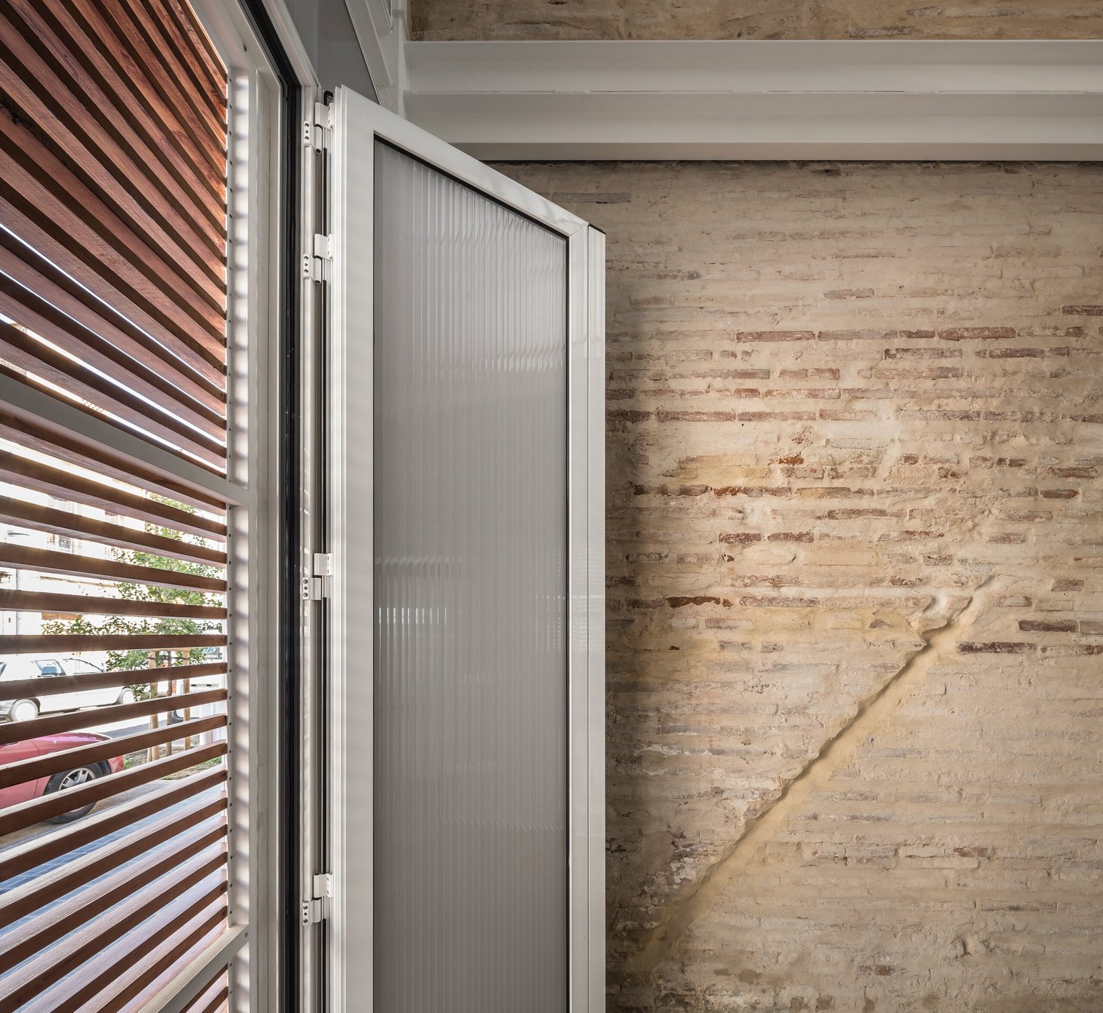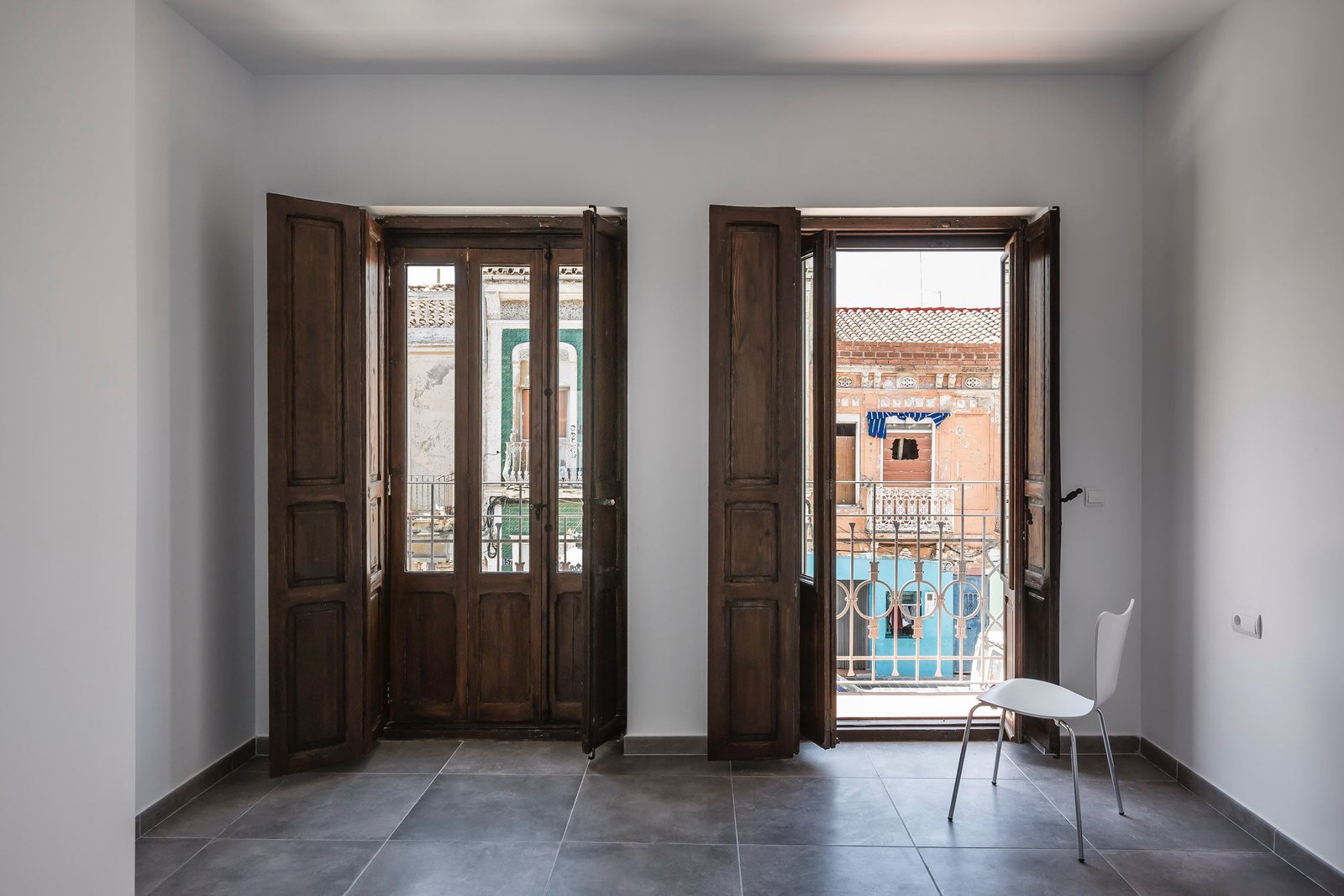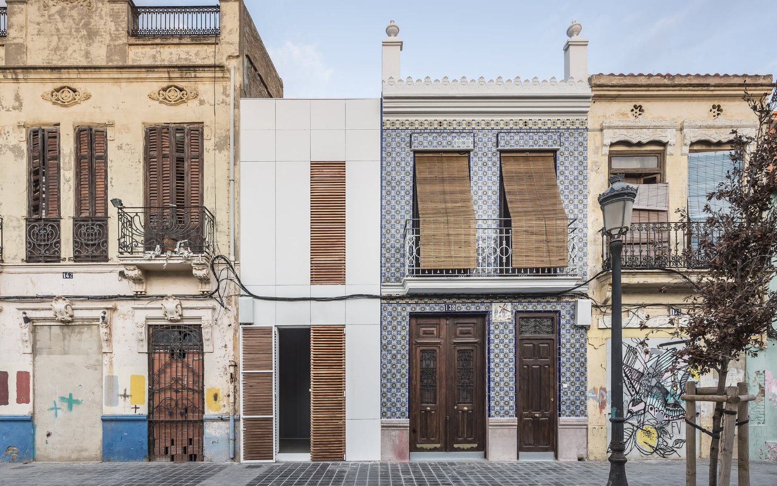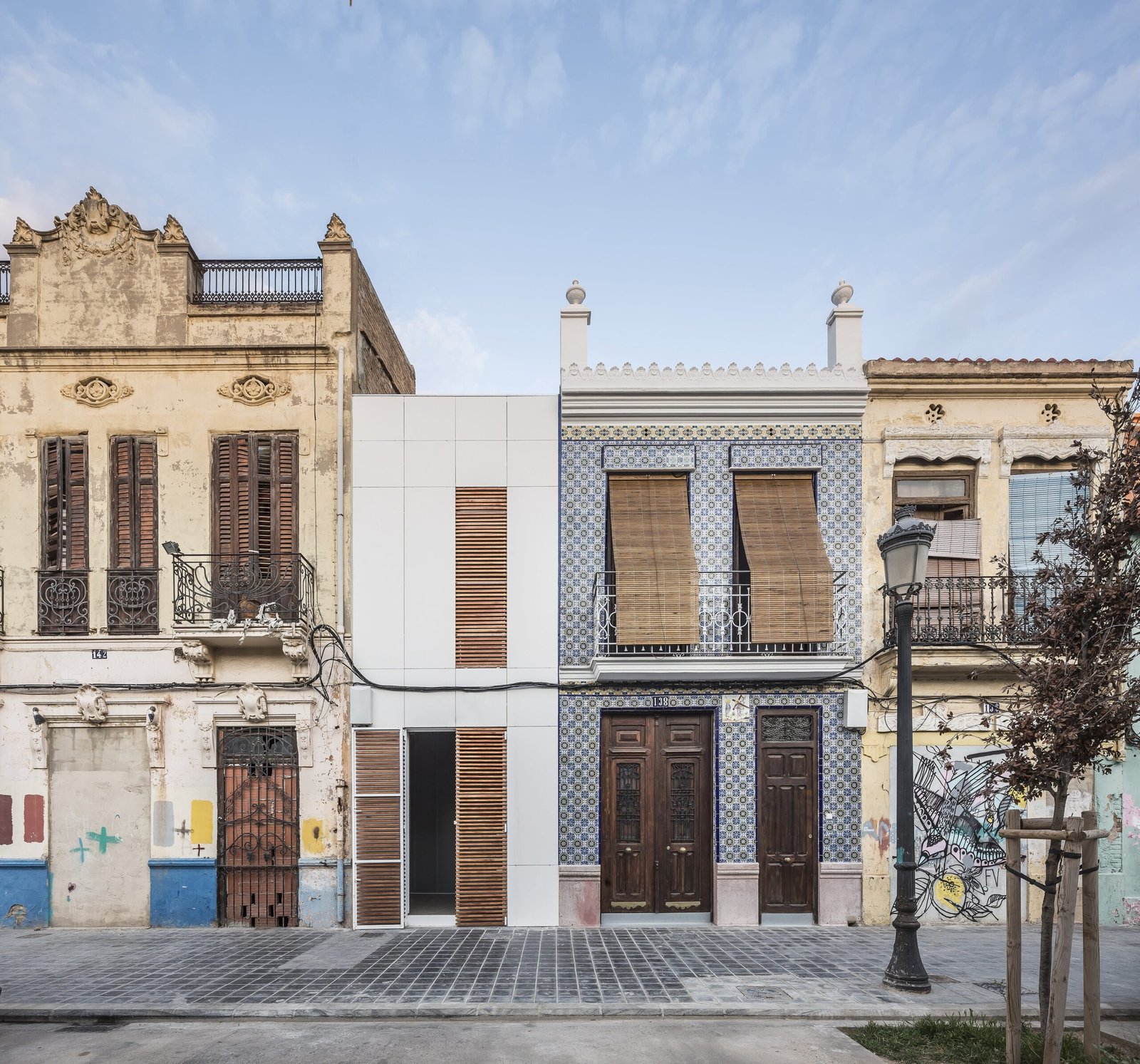 Lo viejo y lo nuevo, lo artesanal y lo industrial, espacios servidos y espacios sirvientes. Una casa, un dipolo. El proyecto parte de una casa okupada y un solar, en uno de los barrios más populares de Valencia, el Cabanyal. El programa es sugerente: destinado a mujeres maltratadas, no conocemos su configuración familiar. Respondemos con una distribución abierta, adaptable, lista para ser personalizada mediante el mobiliario.
