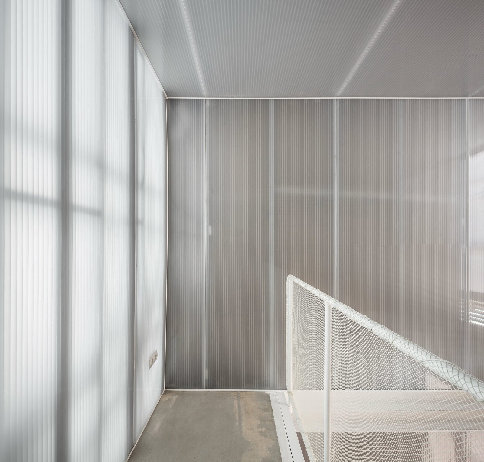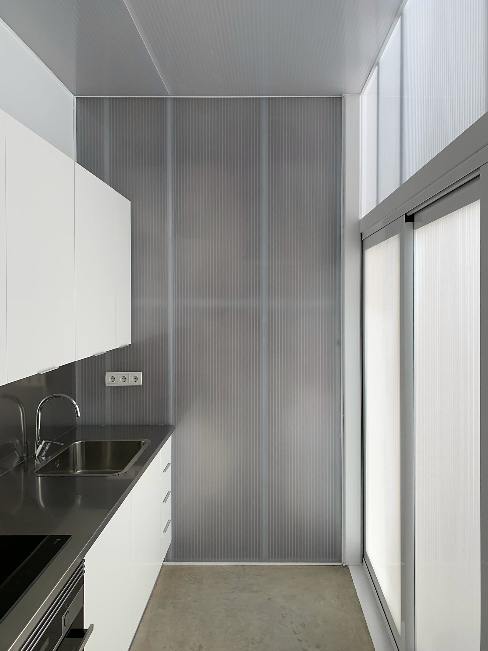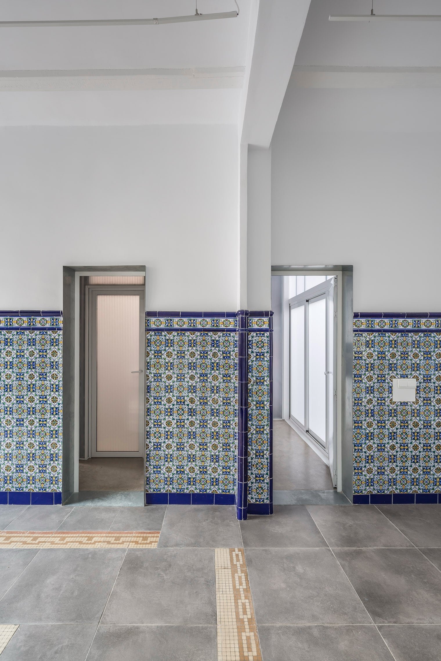 Un dipolo genera energía. Energía para revitalizar. Se limpia la vieja casa, que reluce llena de vida por el día en planta baja y por la noche en planta piso. Los “mecanismos”, el baño, la cocina y sus instalaciones, se anexan en el nuevo volumen joven y prefabricado. Inyectar sistemas constructivos contemporáneos a una trama histórica, dejar caer un prefabricado (dos módulos dominó 3×6) para dotar de instalaciones a una encantadora vivienda de época. Yuxtaponer lo técnico a lo tectónico, el artificio a lo natural, un ámbito de trabajo al de residencia, construcción en seco (a base de acero y paneles de policarbonato) junto a los tradicionales morteros de cal y cubiertas de teja. Construcción ligera (en peso y tiempo), casi industrial, frente a la serenidad atemporal de lo artesanal ¿El factor común? LA CERÁMICA. En la fachada de la parte vieja, se restauran cuidadosamente los tradicionales azulejos valencianos, reluciendo su vidriado original. La fachada de la nueva construcción, se construye con cerámica de última generación: piezas de gran formado colocadas de manera que sus juntas permiten la integración de lo nuevo con lo viejo. La colocación en seco, mediante garras de acero inoxidable, junto a los azulejos agarrados con mortero, subraya la trayectoria temporal de la cerámica, convirtiendo la fachada en un verdadero documento histórico. En el interior, se conservan los paños de zócalo preexistentes. En el pavimento, se recuperan las zonas no deterioradas y se reubican como en un puzle las antiguas baldosas de formato 20×20 entre las nuevas, cerámicas, de 60x60cm.