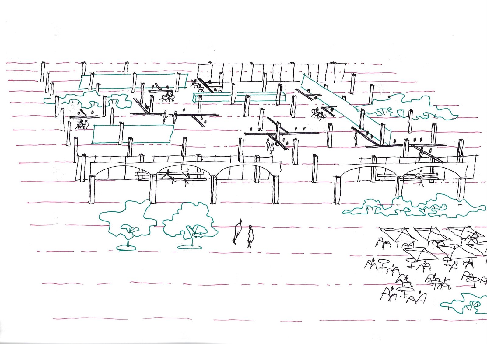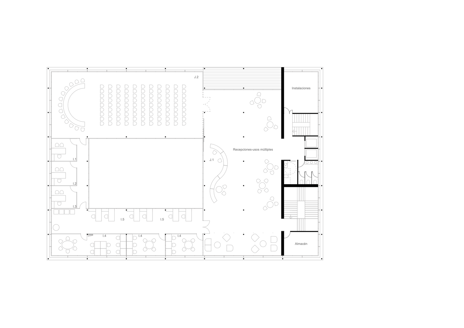 TRANSPARENCIA aún más patente en la planta baja, concebida como una SALA HIPÓSTILA clara y despejada. Proponemos que aloje la ATENCION al público e INFORMACIÓN al CIUDADANO, para minimizar el acceso a plantas superiores.